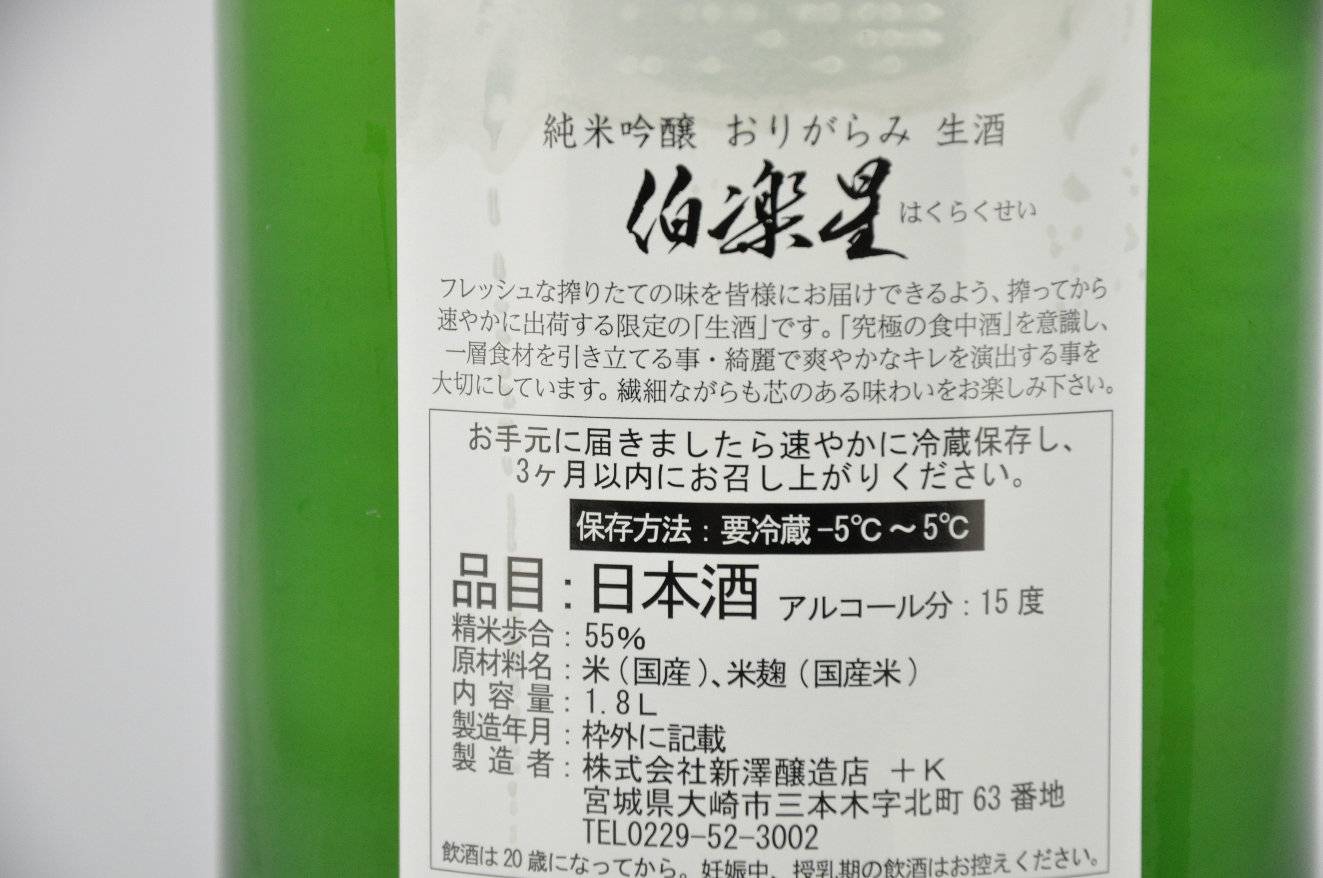 商品名     伯楽星 純米吟醸おりがらみ生酒