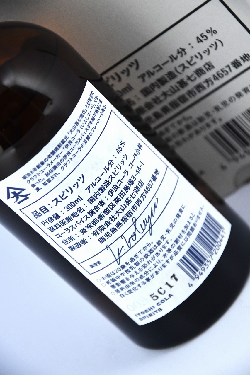 商品名 イヨシコーラ酎 製造者 大山甚七商店 蔵所在地 鹿児島県指宿市 アルコール度数 45度 品目 スピリッツ 内容量 300ml コーラスパイス調合者 伊良コーラ コーラ小林 創業明治八年老舗焼酎蔵元「大山甚七商店」と「伊良(いよし)コーラ」が出会うことで生まれた「伊良コーラ酎」。 ロックやソーダ割りはもちろん、「伊良コーラ酎」と「伊良コーラ魔法のシロップ」で純国産クラフトコークハイも。 |