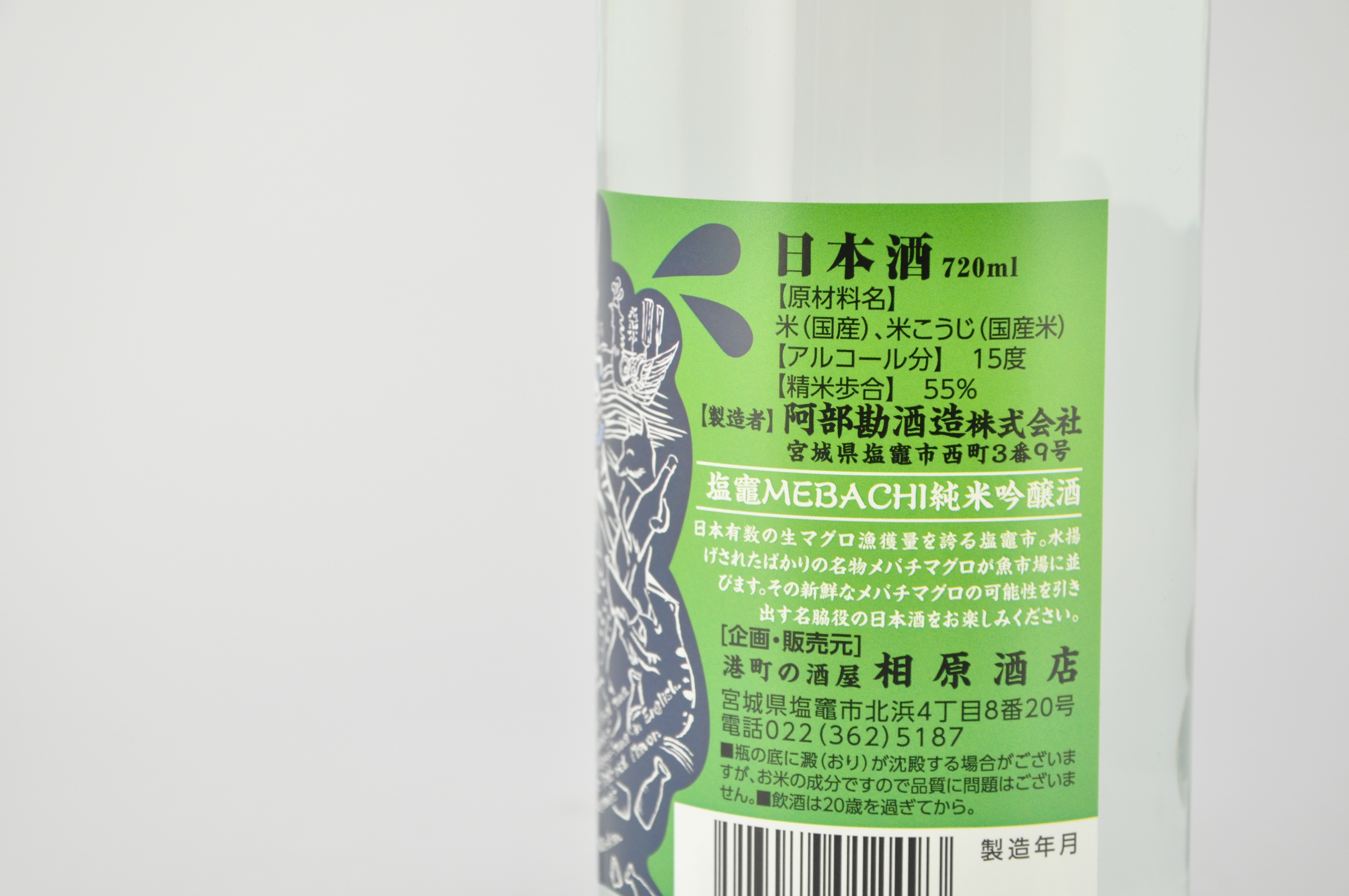 商品名 塩竈MEBACHI(めばち) 純米吟醸生酒 醸造元 阿部勘酒造株式会社 蔵所在地 宮城県塩竈市 精米歩合 55% 日本酒度 +4 酸度 1.7 アルコール度数 15度 2025BY新酒生酒入荷! 加熱処理前のお酒をちょっぴり生のまま出荷、フレッシュで透明感のある生酒をお楽しみください。 生マグロの漁獲量が日本有数の塩竈、水揚げされたばかりの名物メバチマグロが魚市場に並びます。 その新鮮なメバチマグロの可能性を限りなく引き出すお酒。 赤身に脂のはいった鮮やかなメバチマグロを食べながら、どんなお酒が飲みたいか? 飲んだ後にもうひと切れ箸がのびてしまう様な1本を。 メバチマグロとの相性だけを想い、地域の人々を巻き込みながら阿部勘さんが1本のタンクに仕上げてくれました。 そんな名脇役の日本酒「塩竈MEBACHI 純米吟醸酒」を是非お楽しみください。 Shiogama is a city that is known for Japan’s largest catch of fresh tuna. They are sold at the city’s prestigious morning fish market. Here, you can also find our noteworthy product, Mebachi Maguro, or bigeye tuna in English. In your hands is the best locally made sake which brings out this fish’s rich flavor. Trusted as the best gourmet partner for Shiogama’s Mebachi Maguro on your dinner table, choose our special premium sake, only from Abekan. |