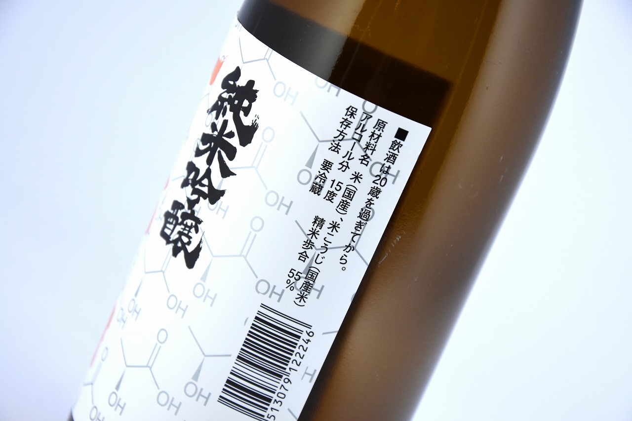 醸造元 阿部勘酒造株式会社 蔵所在地 宮城県塩竈市 精米歩合 55% アルコール度数 15度 日本酒度 -3 酸度 1.5 「阿部勘らしい山廃」を表現するべく、透明感のあるまろやかな米の旨味を感じられる酒質に仕上がっております。 ラベルデザインの背景には山廃には山廃仕込みのポイントとなる「乳酸」の化学構成式がグラフィック化されています。 |
