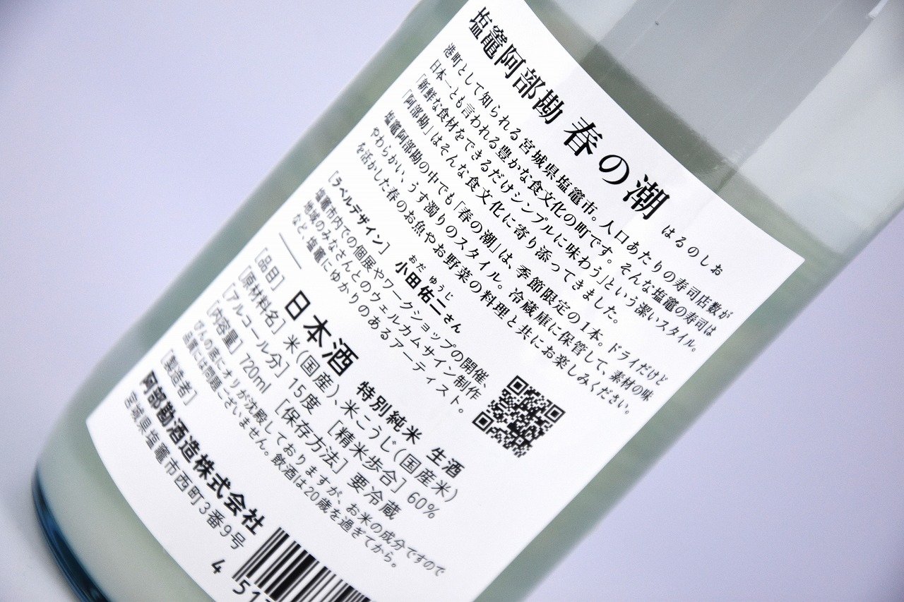 商品名 阿部勘 特別純米うすにごり生酒 春の潮(はるのしお) 醸造元 阿部勘酒造株式会社 蔵所在地 宮城県塩竈市 精米歩合 60% アルコール度数 15度 ドライだけどやわらかい、うすにごりのスタイル。冷蔵庫に保管して、素材の味を活かした春のお魚やお野菜の料理としてお楽しみください。 |
